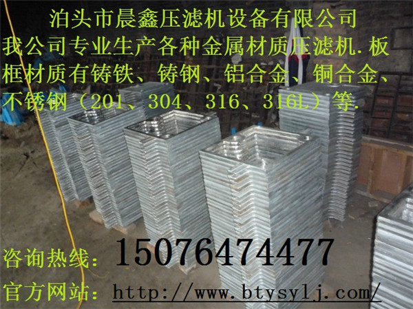 泊頭市晨鑫壓濾機設備公司是從事金屬材質壓濾機的企業,有著豐富的生產經驗。下面我們來介紹一下板框不銹鋼濾板濾框的規格:產品規格有380、520、710、800、920、 1000、1250、1500、1600、2000型,過濾面積由0.5m2-2000m2。不銹鋼壓濾機濾板表面平整光滑,強度高,耐酸堿,耐腐蝕,無味。另外,我公司技術人員研發出一種可以保溫加熱式的過濾板,內部結構獨特,深受廣大客戶喜愛。